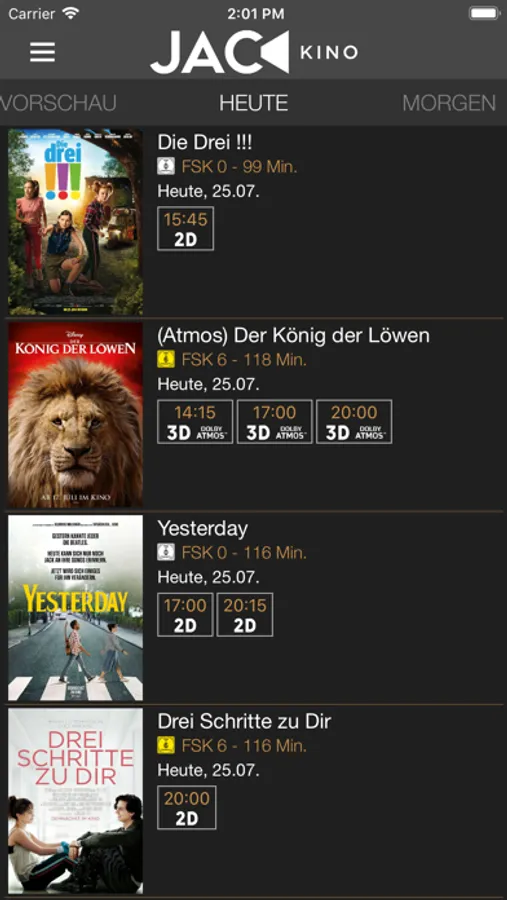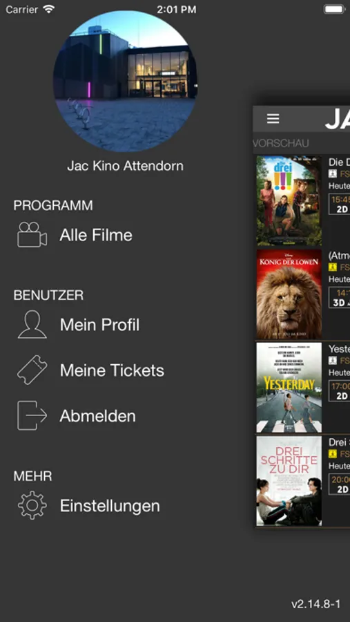 Unsere neue, native Kino-App bringt Sie mit einfachen, intuitiven Gesten in einer ansprechenden und modernen Aufmachung in wenigen Schritten zu Ihren Lieblingsplätzen. Genießen Sie die neuesten Trailer des aktuellen Filmprogramms und seien Sie immer auf dem neuesten Stand. Registrieren Sie Ihr persönliches Benutzerkonto und verwalten Sie Ihre Buchungen bequem und direkt in der App.