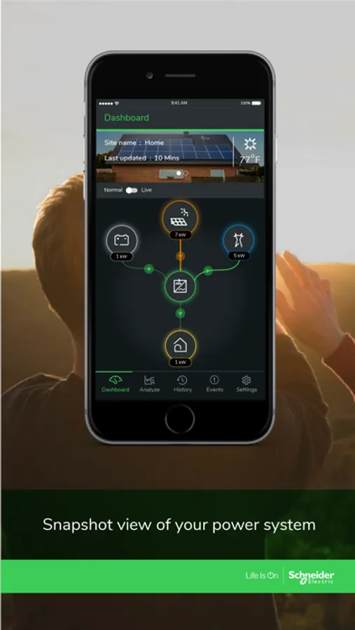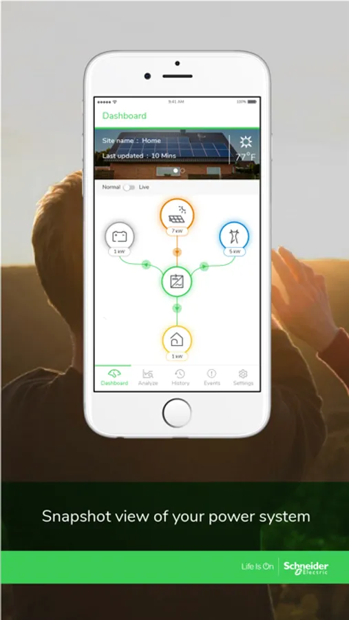 The InsightMobile App makes remote monitoring of your solar and storage solution easy. Working hand in hand with the Schneider Electric Insight Facility, Insight Home, Conext ™ Gateway, and Insight Cloud, the InsightMobile App allows quick access to critical site information from anywhere with an internet connection or local access point to Gateway.