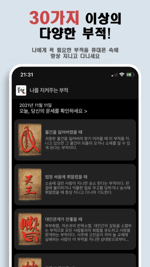 이런 모든 분들을 위해 실제 부적을 가지고 이 앱을 만들게 되었습니다.