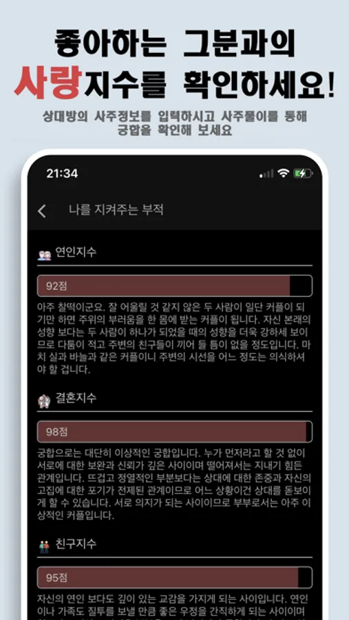 - 운세종류: 오늘의 운세, 프리미엄 궁합보기, 프리미엄 로또운세, 오늘의 재물운 및 투자운, 오늘의 종합애정운, 내운명의 배우자, 주간운세, 월간운세, 신년운세, 신년 토정비결, 신년 반쪽찾기 등