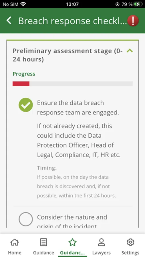 • Interactive data breach response checklist providing practical advice for dealing with a personal data breach
