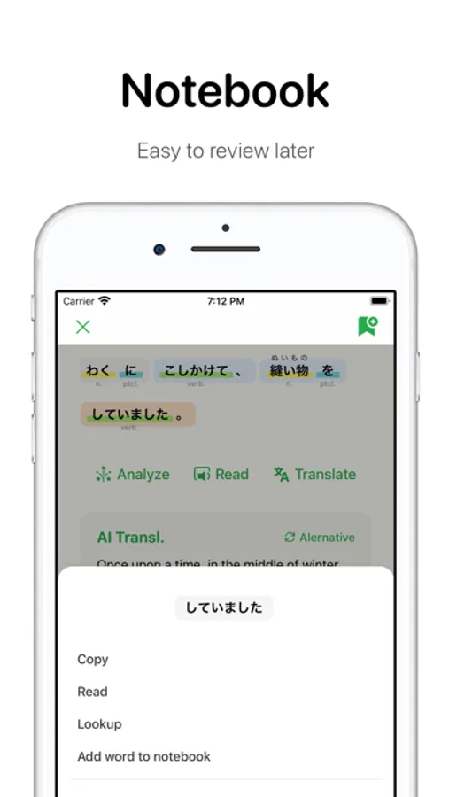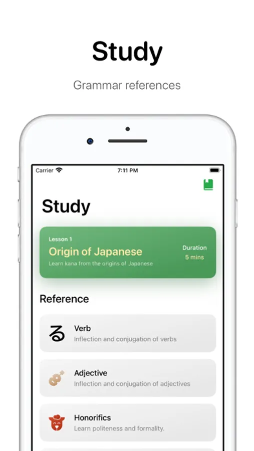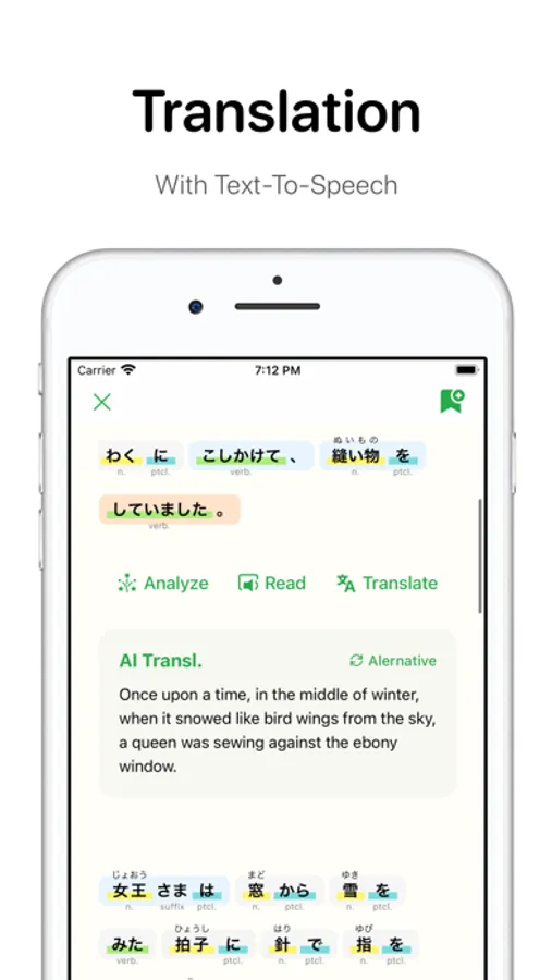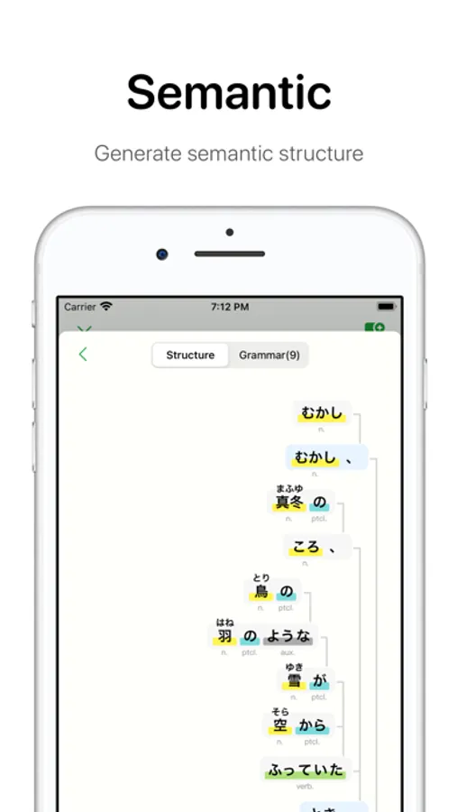Oyomi is a Japanese "Grammar analyzer" and "Learning" App.