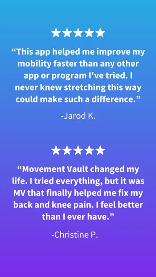 92% of Movement Vault users achieve improved flexibility and mobility within 30 days. You can too. *based on a 5,000 user survey