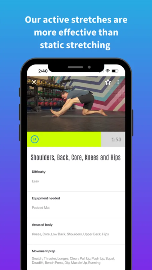 Most stretching apps focus on static stretching. Static stretching has been shown to increase injury risk and decrease performance. So why waste your time with stretches that are not effective?