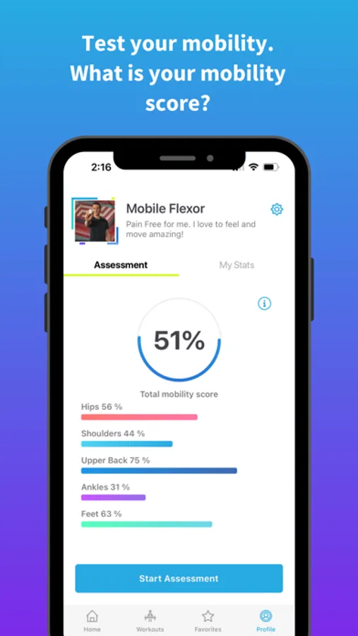 + Generate a mobility score for you shoulders, upper back, hips, ankles, and feet