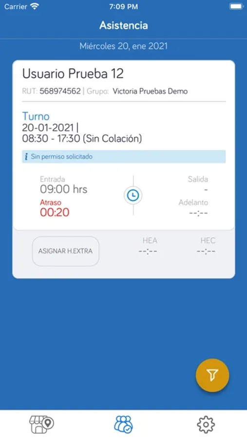 El supervisor puede visualizar, al igual que en la web, las sucursales con dotación completa, incompleta y no abiertas, así como también los horarios de las marcas de los empleados de la sucursal, pudiendo además realizar acciones como justificación y asignación de horas extra.