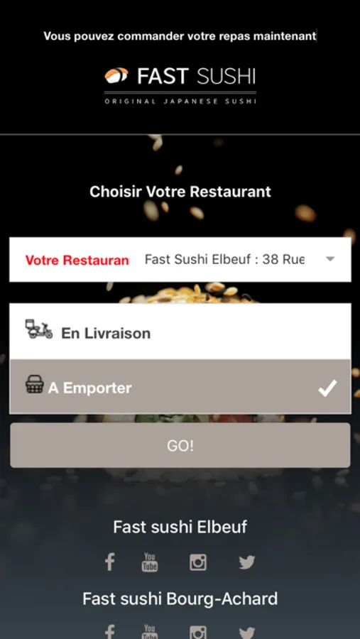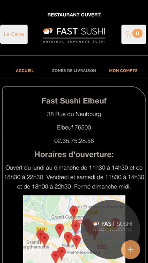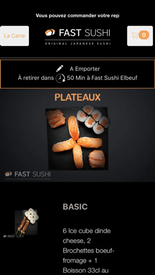 L'application Fast Sushi vous permet de commander en ligne ou par téléphone via votre application . Vous pouvez consulter notre carte et choisir vos produits .