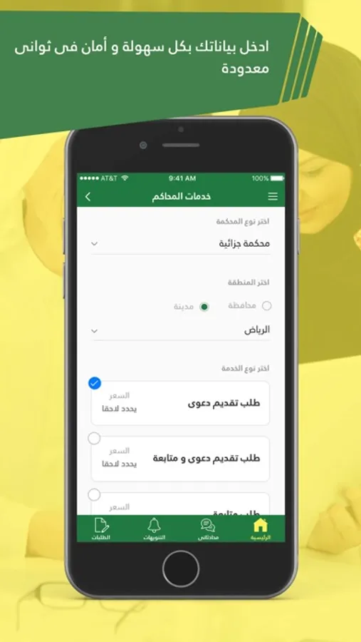 تقديم جميع الخدمات الإلكترونية والخدمات العدليه داخل المملكة العربية السعودية عن طريق تقديم الخدمة من قبل المستخدم والمشغل ويمكن للمستخدم اختيار نوع الخدمه.