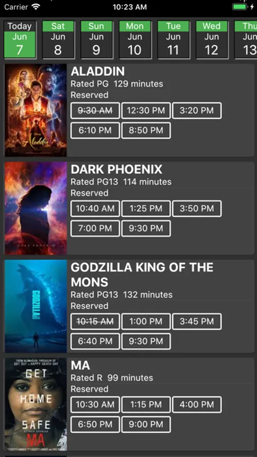 The app provides instant access to available showtimes, seats, pricing, and theatre information.