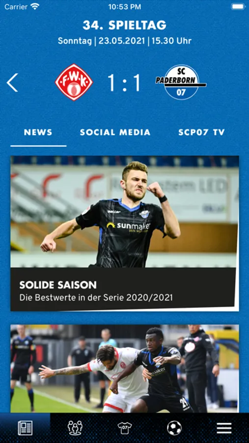 In der SCP07-App gibt es die aktuellen Neuigkeiten und Informationen rund um die Profi-Fußballmannschaft des SC Paderborn 07.