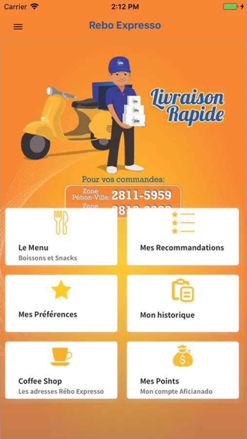 Rebo Expresso permet à nos clients de créer un compte , visualiser nos menus, passer des commandes , gérer leurs points et réclamer des cadeaux.