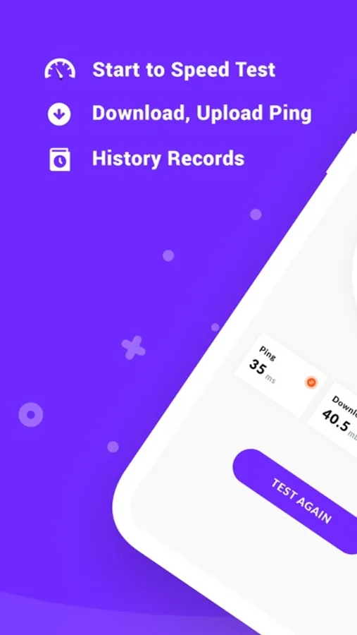 • Discover your network’s download, upload, and ping speed with just a single tap on the screen and a couple of seconds with an accurate, trustworthy, and easy-to-use interface.