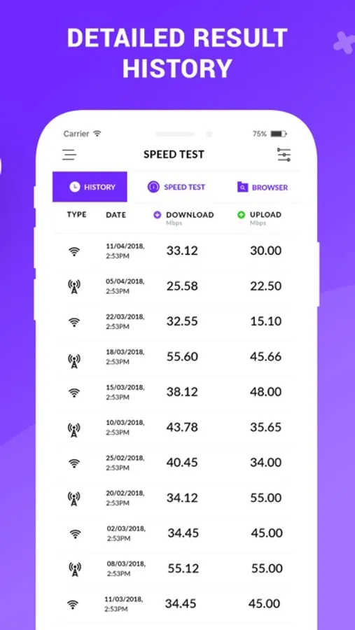 • Check your History, and get detailed information of every speed test you did in the past to learn about how effective your Internet connection was.