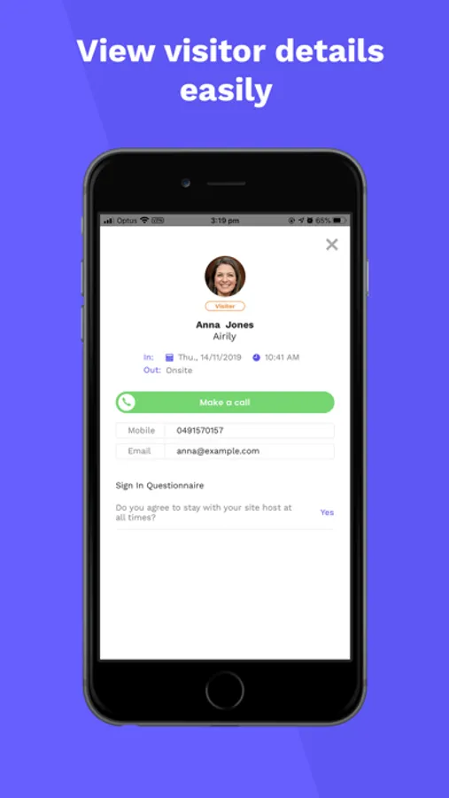 - Create sign in and sign out questions unique to the visitor type