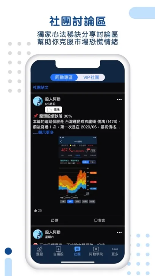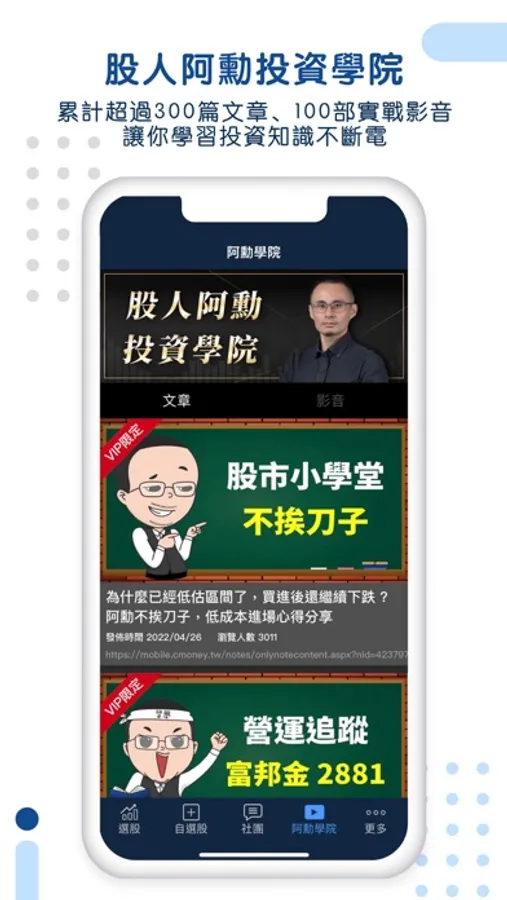 以「基本面」為主軸的內建獨家心法秘訣投資學習園地,由阿勳親自經營與學員互動。