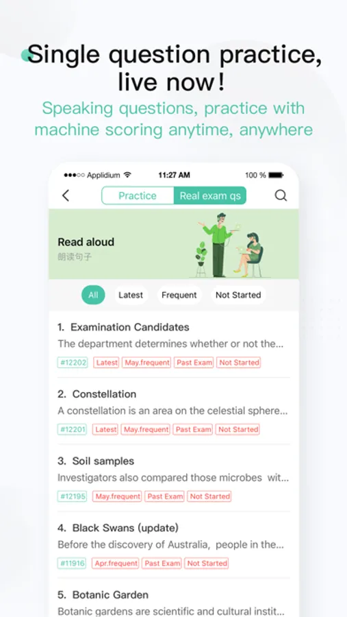 With the most extensive updated real PTE exam question bank (over 8000 questions) and new question updated every week. Fully-labelled high-frequency / latest real exam questions in our extensive classified bank covering all question types; easily save your tough questions for revision, and review / re-do previous practice at any time.