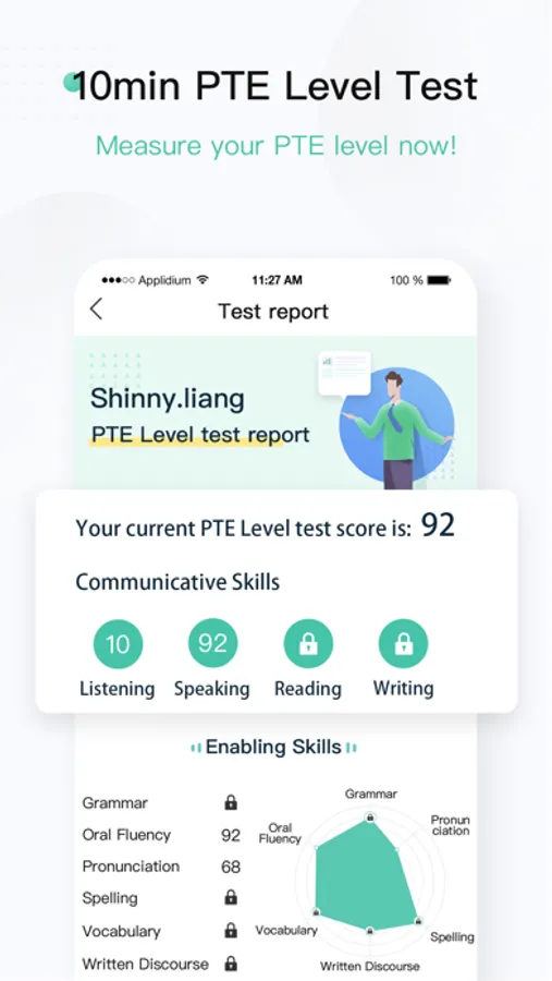 Closely aligned to the official Pearson Academic Score guide. In addition to score results, also receive learning analyses on pronunciation, fluency, grammar and spelling errors & suggestions to most quickly and effectively improve.
