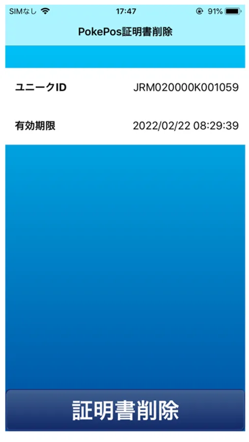 以下のPokePosアプリで使用している証明書の有効期限確認及び削除ができます。