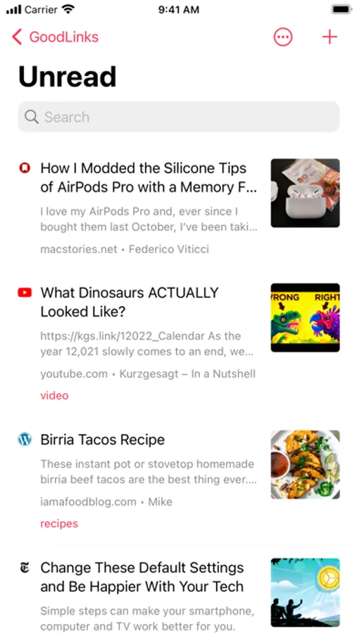 • Archive :: The full rich text of each article gets saved in GoodLinks, and your reading history provides a natural archive if you need it. Save as many links as you want.