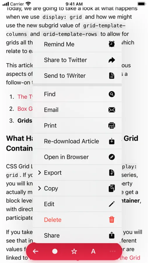 • Actions :: Actions help you manage and share links. You can add article to Starred, share to other apps, export to PDF, plain text or Markdown... Build your own actions to export and share your saved links.