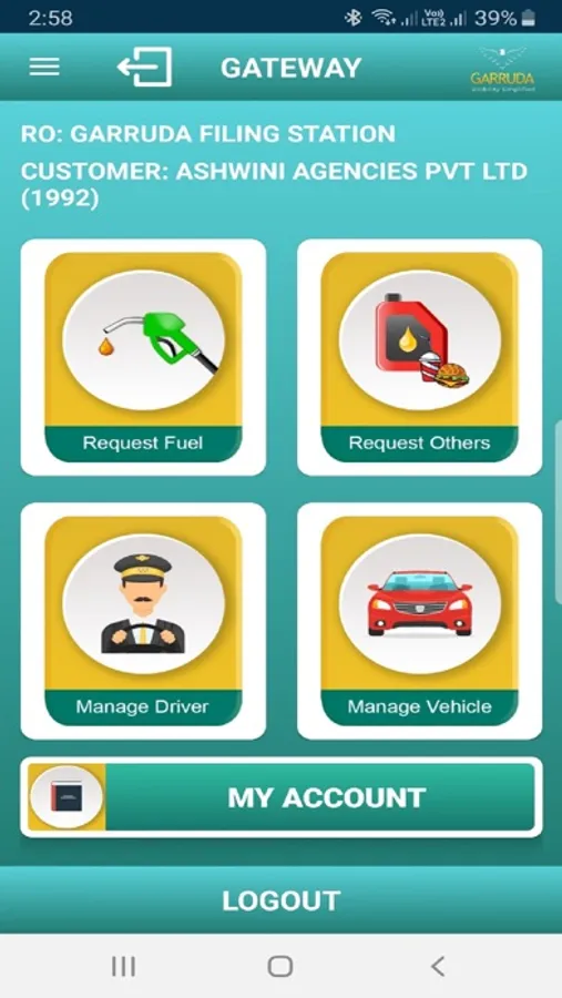 3. Customer can manage his own Vehicles & Drivers and Also the process of raising requests(orders) for Fuel & Lubes, Other Items and services.