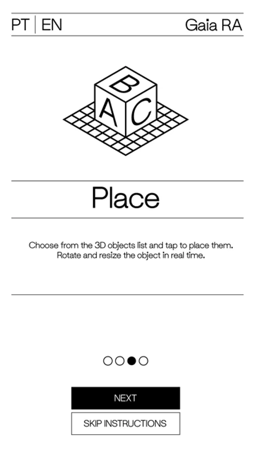 Gaia RA gives access to augmented reality experiences that use virtual space to convey messages and publicize events, deepening and opening out the contents associated to the brand Gaia – Todo um Mundo. With this app, the user can interact with pre-existing spaces by adding an original layer of information that can be edited and registered in real time. Users, creatives and cultural agents can occupy spaces and streets, or produce posters with a layer of augmented reality that is visible through the app and shareable on social media.