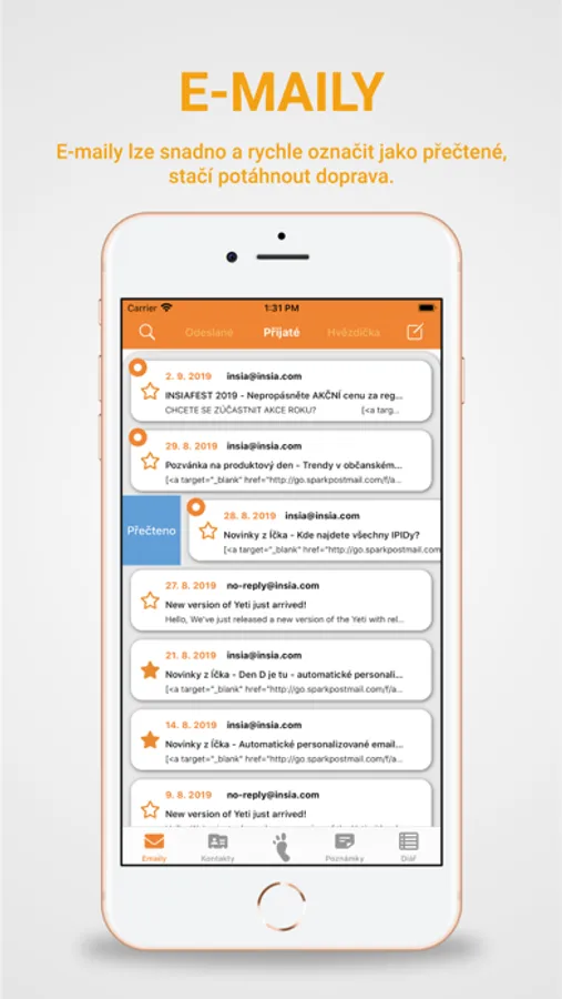- Upozornění na příchozí email, i když je aplikace zavřená