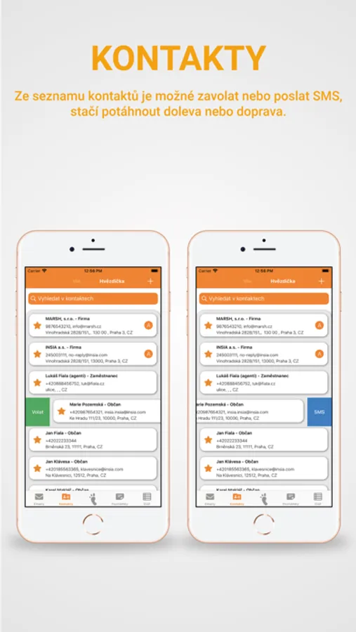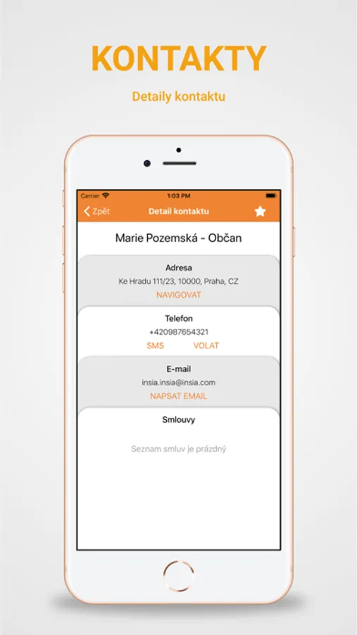 - Seznam kontaktů včetně jejich detailu