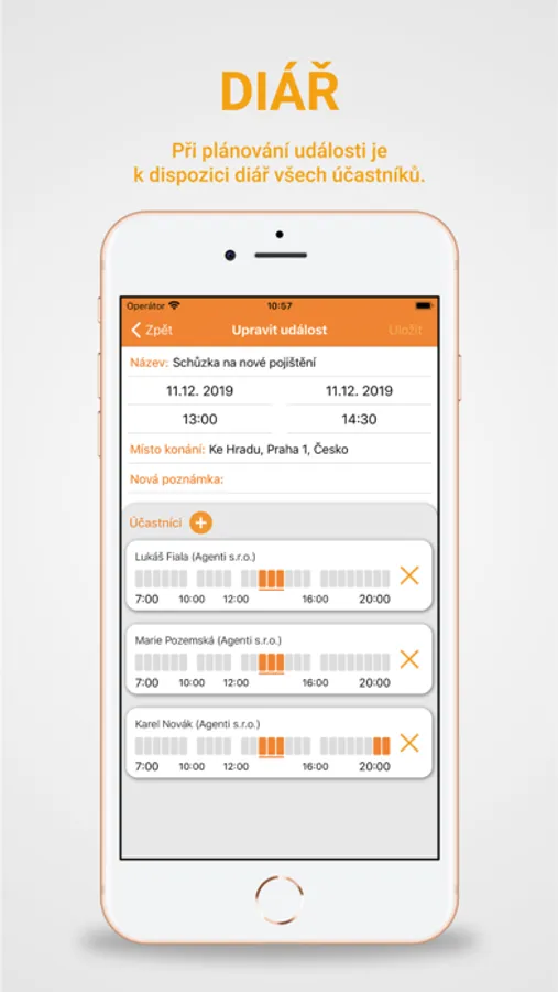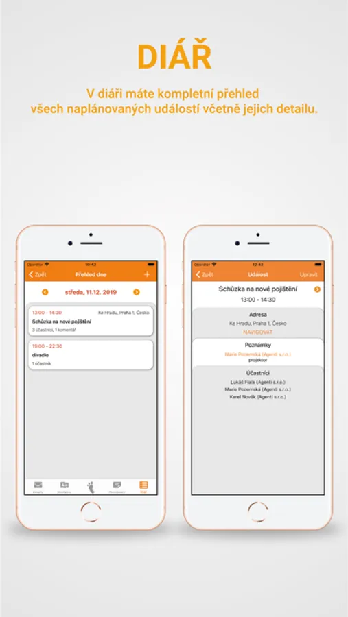 - Propracovaný diář se všemi naplánovanými událostmi včetně jejich detailu