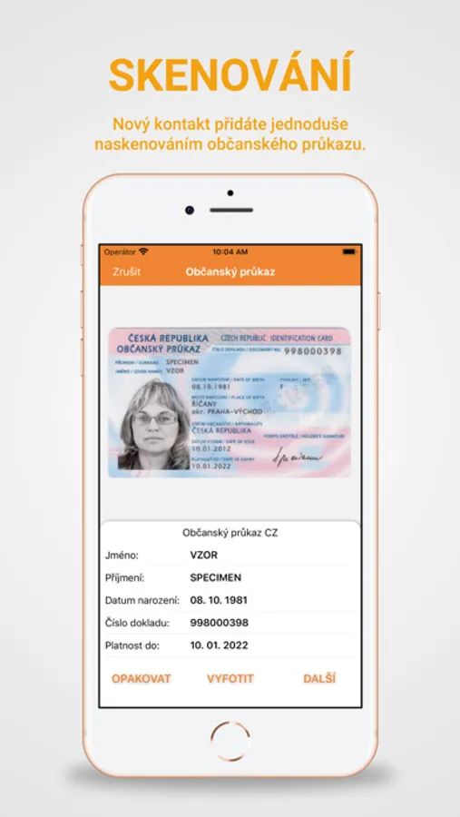 - Funkce skenování občanského průkazu