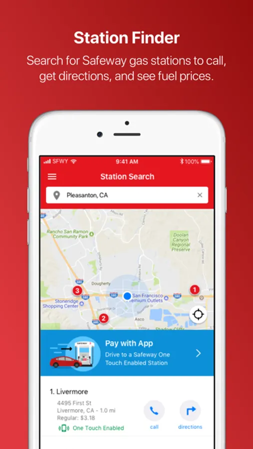 Search for a nearby station or one along your route. You can view gas prices, get directions, and call the station, all from the app!