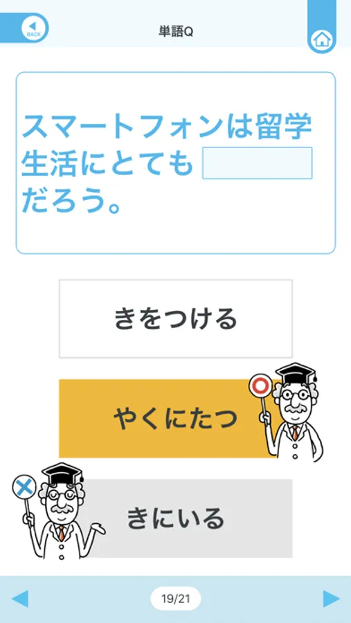 ・単語Q:単語Flashで覚えた単語を、クイズ形式で練習できます。