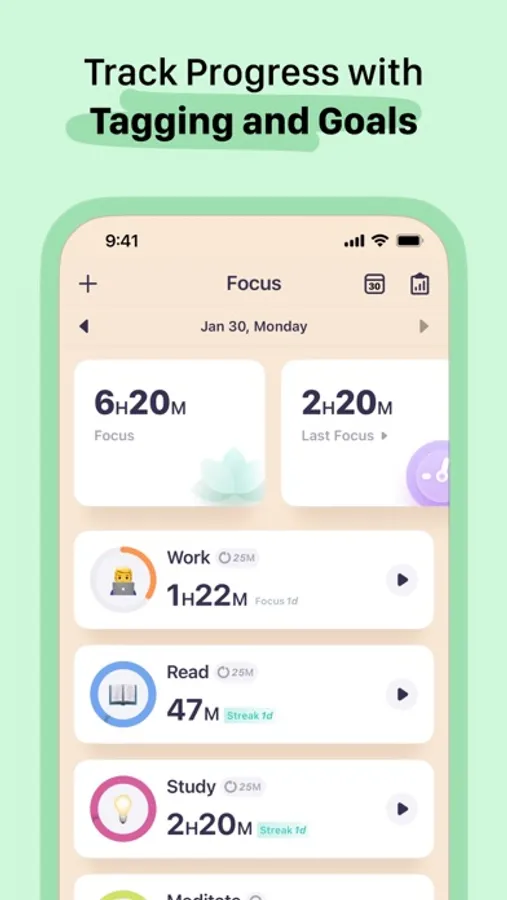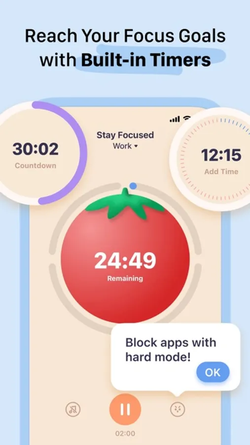 • Supports three modes: Pomodoro, countdown, and time accumulation