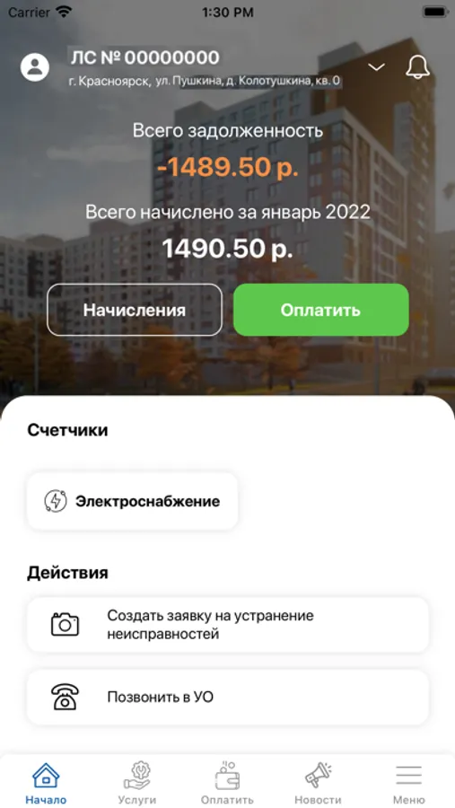 А что насчет передачи показаний счетчиков, получения информации о начислении оплаты за квартиру? Теперь это не отнимет много времени, поскольку Вы получаете всю необходимую информацию непосредственно на свой смартфон в удобной и наглядной форме и выполняете все рутинные операции буквально за пару нажатий на экран.