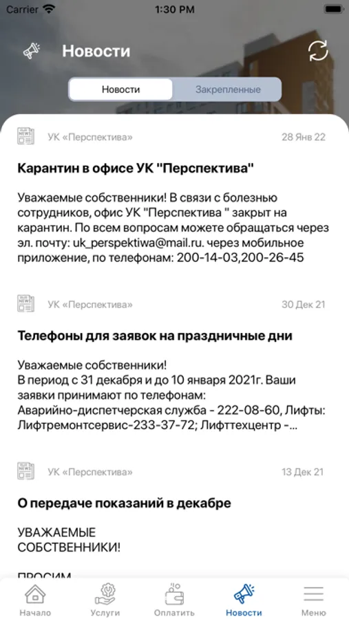 Добро пожаловать в мобильное приложение «УК Перспектива»!