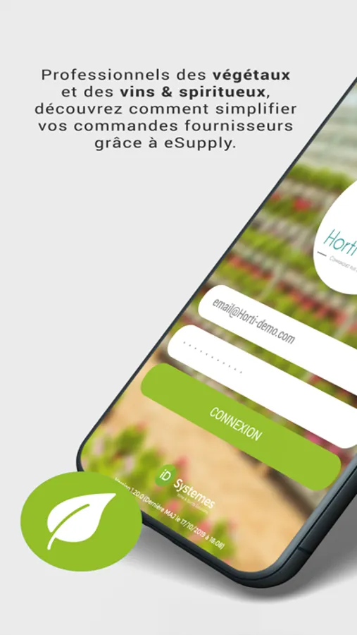eSupply est un outil développé par le groupe iD Systemes qui permet à tous les professionnels de l’horticulture (fleuristes, jardineries, …) et des vins & spiritueux (cavistes, gérants de bar, …) de simplifier leurs commandes et la communication avec leurs fournisseurs.