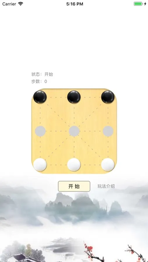 1.步子:棋盘共有9个位置。游戏时,双方各执3枚颜色或外观不同的棋子,相对应地摆放在两对边上。该系统将3枚黑子置于上边3棋位,3枚白子置于下边3棋位。