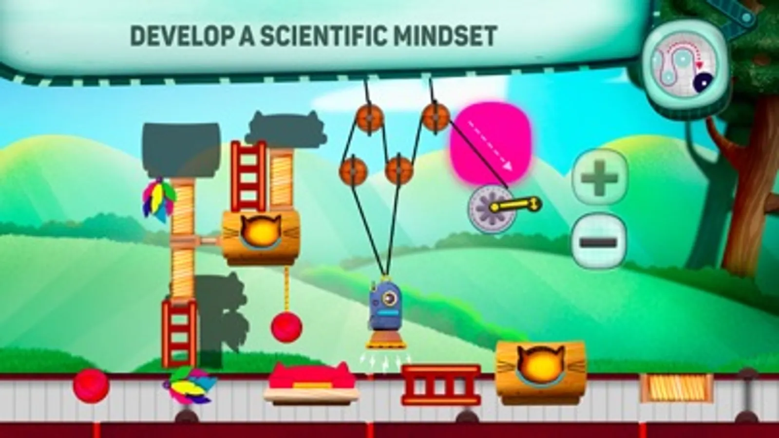 Play and learn as you earn cookies to feed the cat. Develop scientific thinking, logic and curiosity. And have fun with your new friends, the cat and the robot.