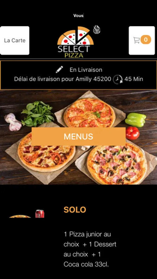 L'application Select Pizza vous permet de commander en ligne ou par téléphone via votre application . Vous pouvez consulter notre carte et choisir vos produits .