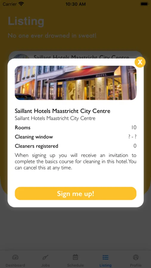Cleany is the newest online platform for students that are looking for a part time cleaning job and is focussed on hotels. You can easily sign up via the app and select the hotels you want to work at. Our advanced system offers hotels the possibility to push through their occupancy while you can set your own availability. Once your job is confirmed, you will receive an automatic notification in the app. Easy as that!