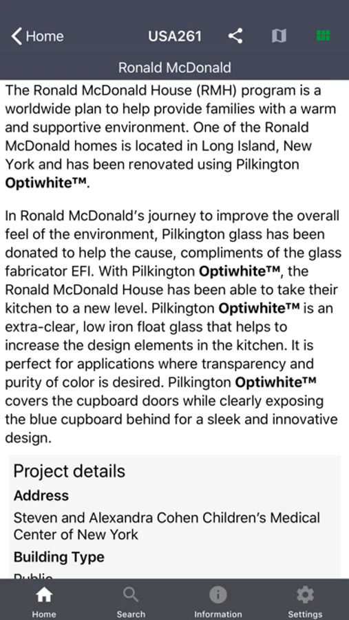 The Project references app is a useful tool for professionals in the construction industry and a valuable source of information for those interested in modern architecture. A new, attractive design, intuitive search engine, great pictures and the option of sharing project information via social media are the main features of the app presenting the most interesting architectural projects using Pilkington glass. Users of the app can search projects by location, type of building, benefit-led category, type of glass, or by simply typing text into search. The app can be used to visit projects located in the users’ location and gain a better feel of how the glass products look in real applications. Local language searchable databases are available for a number of countries in addition to the global database that includes projects from all over the world with descriptions available in English. Users can choose preferred database in the app settings section. We have also provided details of our relevant contacts, in case you require any additional information.