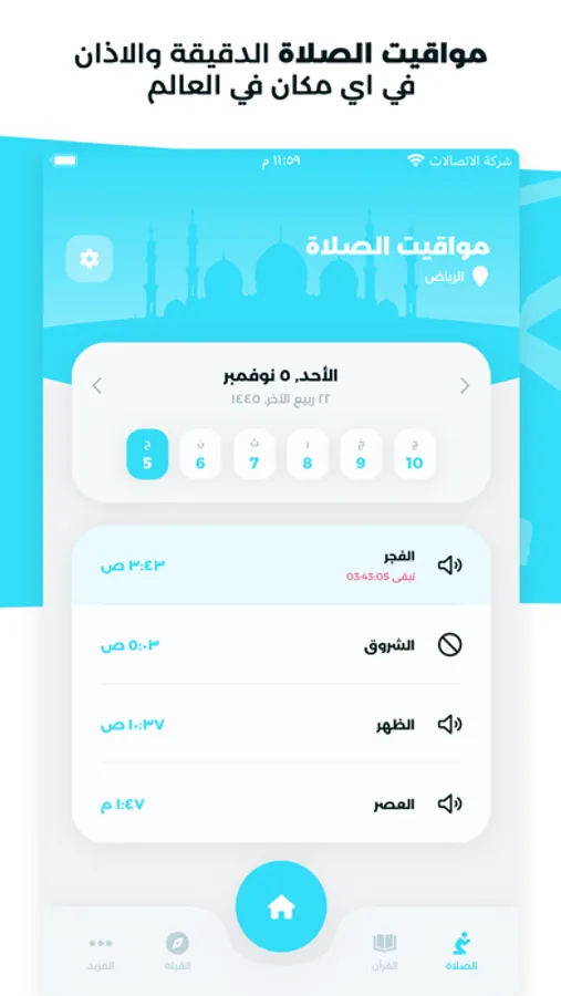 تصفح أوقات الصلاة الدقيقة لاي يوم في مدينتك بشكل سهل وتلقائي.