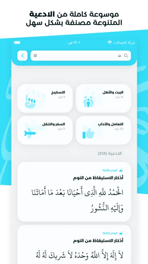 سهولة الوصول الى الادعية من خلال خاصية البحث المتطور.