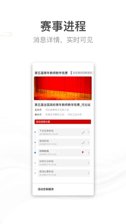 一款为参加全国中小学青年教师教学竞赛的老师们准备的软件,足不出户,零距离参与实时比赛。以锤炼青年教师教学基本功,加强师德师风建设为着力点,充分发挥教学竞赛在提高教师队伍素质中的引领示范 作用,弘扬劳模和工匠精神,进一步激发广大中小学青年教师更新教育理念和掌握现代教学方法的热情,努力造就一支有理想信念、有道德情操、有扎实学识、有仁爱之心的高素质、专业化教师队伍,推动我国中小学教育事业现代化。