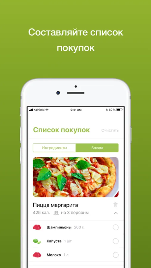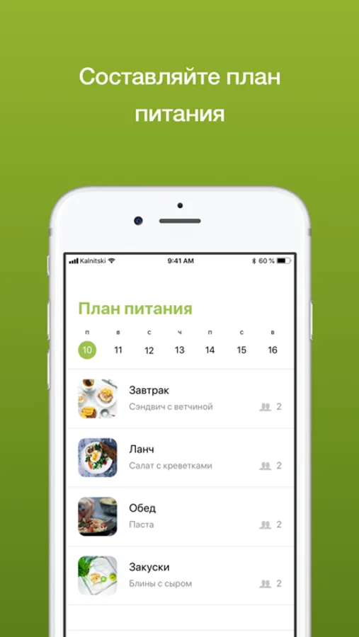 Есть возможность составлять план питания на неделю, на разное количество персон.