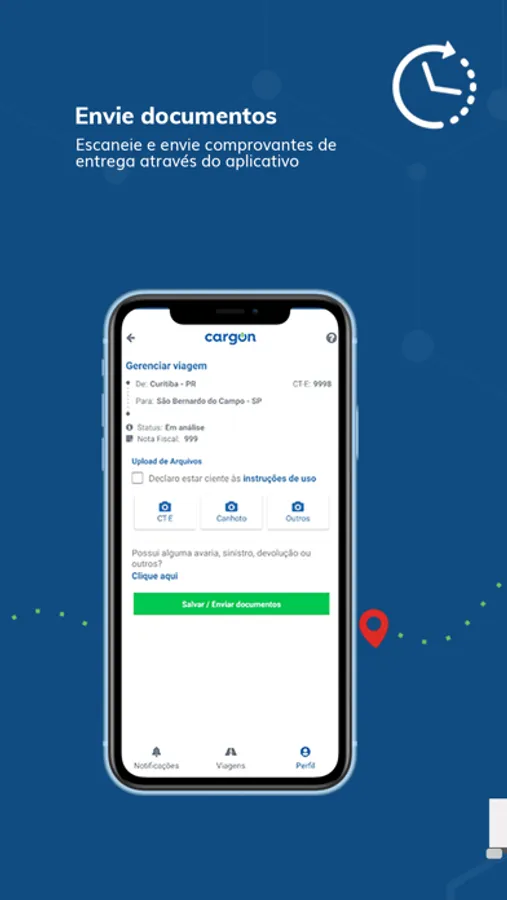 Depois da coleta, é só confirmar que está pronto para a entrega e transportar com seu caminhão. Chegando no destino, apenas informe a sua chegada e, após o descarregamento, inicie o processo de finalização, enviando foto dos documentos necessários e finalize a viagem!