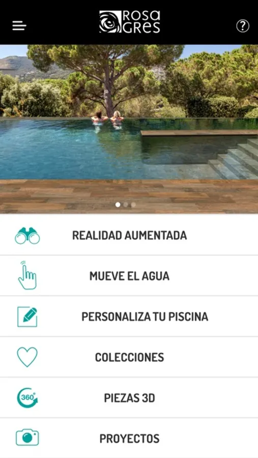 The new Rosa Gres app helps you find the ideal porcelain stoneware color for pools and terraces. Customize your pool by changing the colors of each area and seeing how it affects the color of the water. With its augmented reality function, you can see every color panel in its entirety. In the 3D area you can rotate all the trim pieces 360º to see them in detail from all angles. In the projects section, you will find ideas and trends to inspire your pool and outdoor space designs. The app also allows you to easily share content from your device. Download it now and live a creative experience with our colors. The Rosa Gres app can be used offline and is completely free of charge.