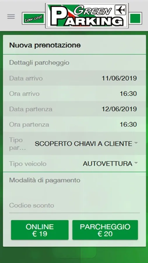 GreenParking prenotazioni parcheggio aeroporto Milano Malpensa