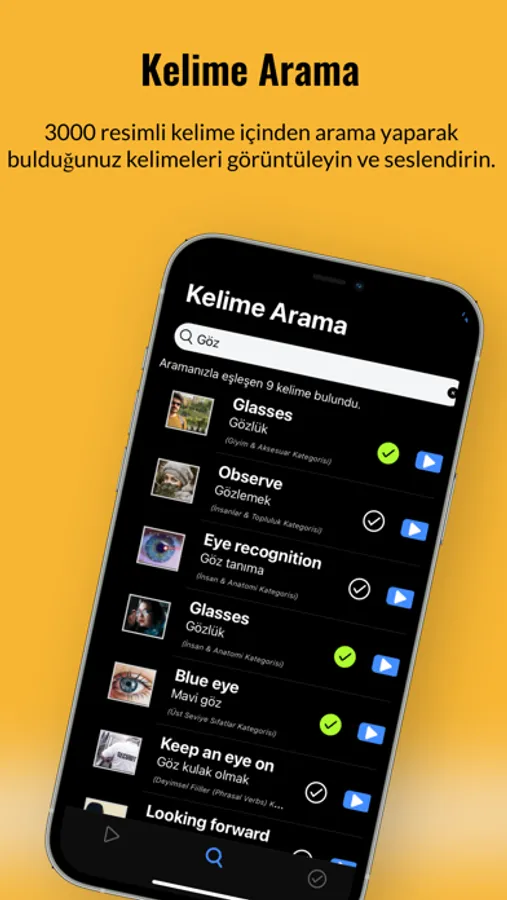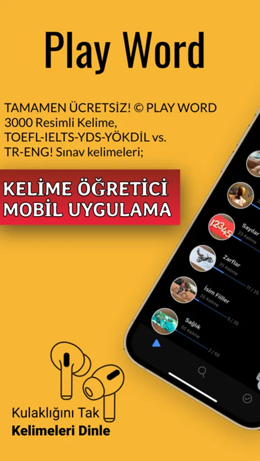 - Kelime Oynatıcı Özelliğiyle Kelimelerinizi Her yerde Tekrarlı Dinleyerek Aşina Olun!