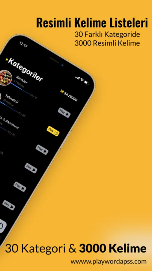 - PLAY WORD bir dil-kelime öğretici eğitim uygulamasıdır. Yeni kelimeleri size izleterek (dinleterek), test ederek öğretir. Yeni nesil bir yapay zekâ öğretmendir. Kelime listelerini hafızada daha kalıcı yer edinmesi için “Kelime Oynat” özelliği ile izletir-dinletir. Yine ilgili kategorilerde oluşturulan listeleri “Test” özelliğiyle çoktan seçmeli test olarak eğlenceli şekilde öğretir. 30 farklı kategoride 3.000 resimli kelime seti için seslendirme telaffuz dil desteği sunarak, öğrenmek istediğiniz dilde 3.000 kelimeyi resimli ve seslendirmeli* şekilde görsel ve işitsel hitap ederek kalıcı öğrenmeyi sağlar.